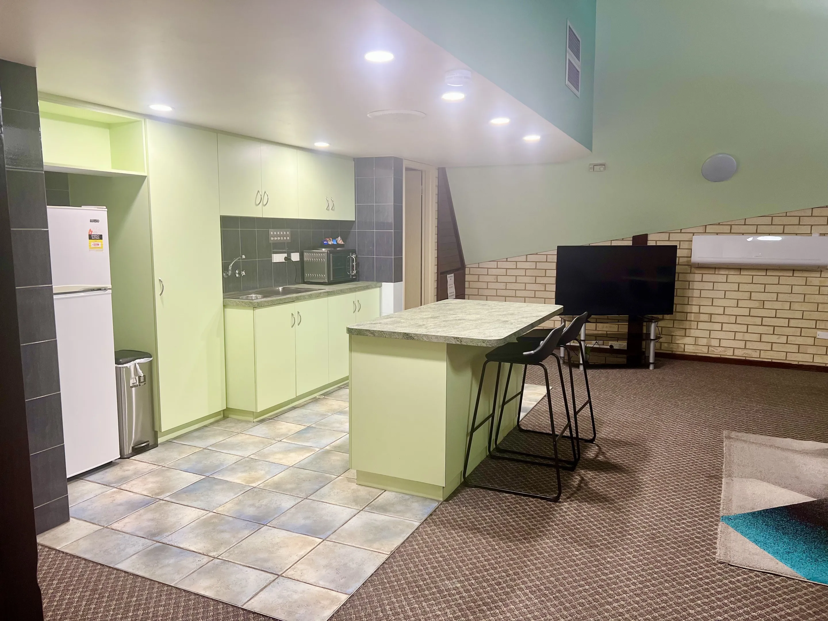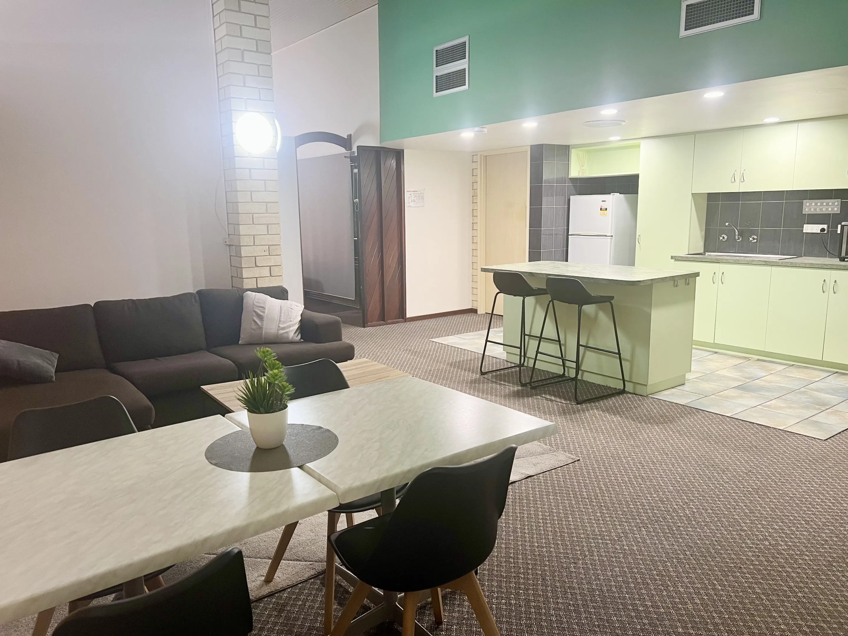 Experience spacious comfort in our largest accommodation, perfect for families or guests seeking extra room to unwind. This elegant Studio Apartment features two plush queen beds, lounge, dining area, bathroom, and a kitchenette. With ample space and thoughtful touches throughout, it’s designed for relaxation and convenience. Please note: this room is located on the first floor and is accessible via stairs.